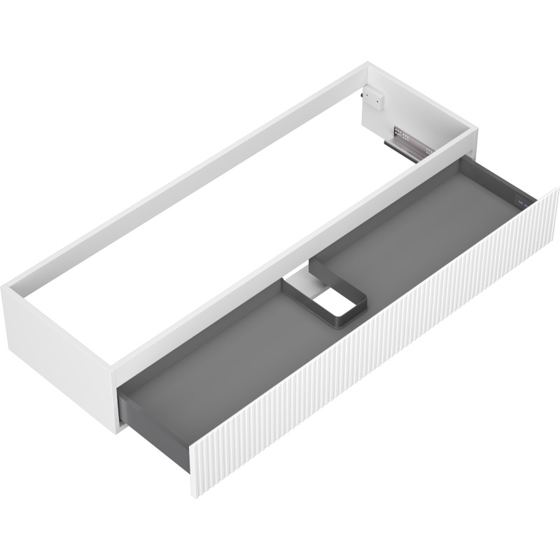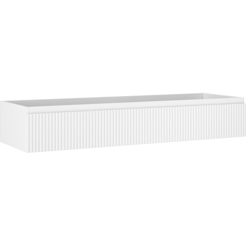 Specifikace produktu: Šířka: 140 cm Výška: 23,5 cm Hloubka: 46 cm Barva korpusu: Matná bílá Materiál korpusu: Lakovaná deska Barva čela: Matná bílá Materiál čela: Lakovaná MDF deska Struktura čela: Drážkovaná Počet zásuvek: 1 Prostorná zásuvka s funkcí tlumeného dovírání Plný výsuv pro snadný přístup k obsahu zásuvky Povrch odolný vůči UV záření Kombinovatelný s pracovní deskou nebo umyvadlem Otis, Vela Smontovaný produkt