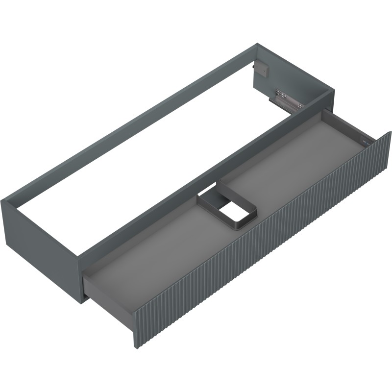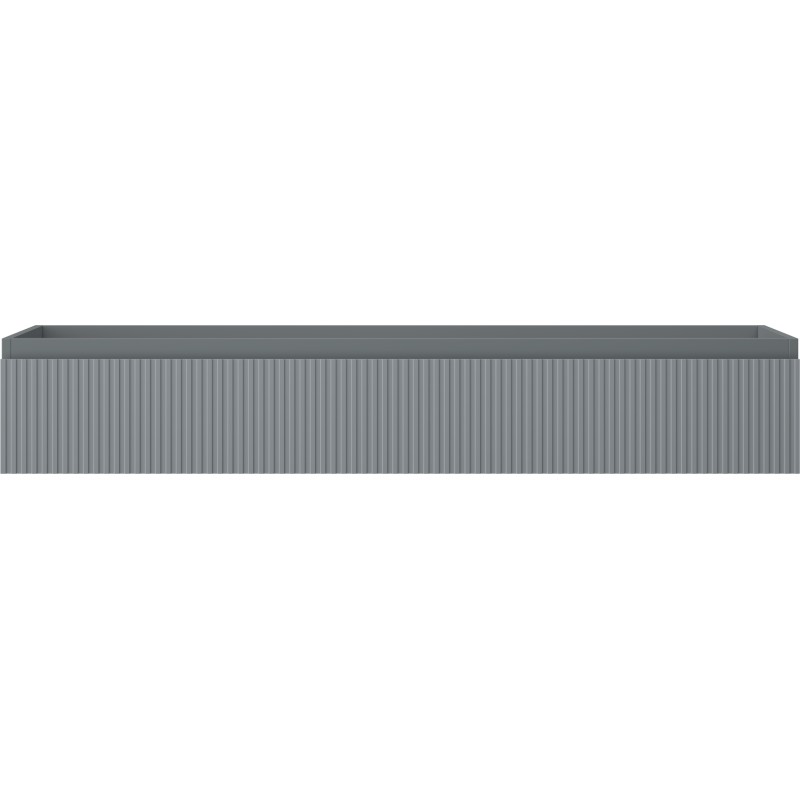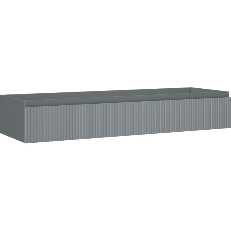 Specifikace produktu: Šířka: 140 cm Výška: 23,5 cm Hloubka: 46 cm Barva korpusu: Matný grafit Materiál korpusu: Lakovaná deska Barva čela: Matný grafit Materiál čela: Lakovaná MDF deska Struktura čela: Drážkovaná Počet zásuvek: 1 Prostorná zásuvka s funkcí tlumeného dovírání Plný výsuv pro snadný přístup k obsahu zásuvky Povrch odolný vůči UV záření Kombinovatelný s pracovní deskou nebo umyvadlem Otis, Vela Sestavený produkt