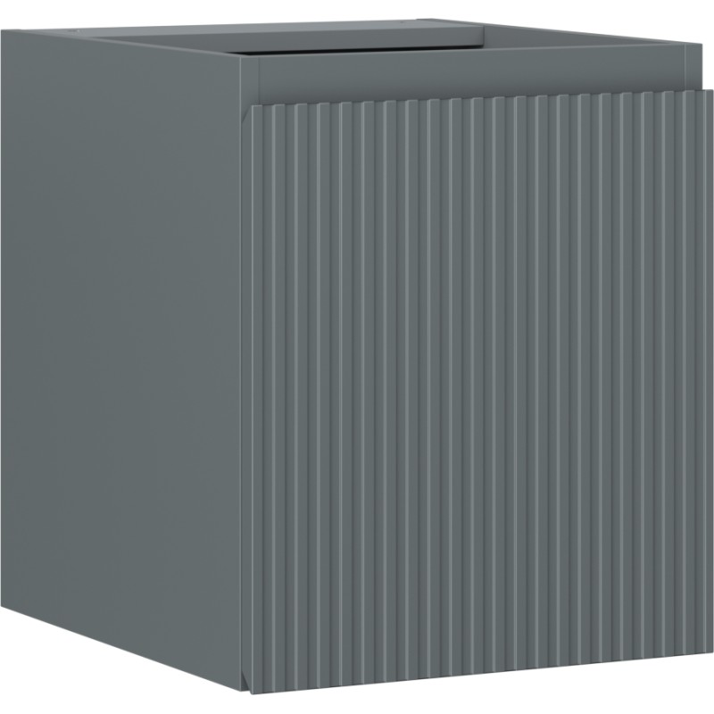 Specifikace produktu: Šířka: 40 cm Výška: 47 cm Hloubka: 46 cm Barva korpusu: Matný grafit Materiál korpusu: Lakovaná deska Barva čela: Matný grafit Materiál čela: Lakovaná MDF deska Konstrukce čela: Drážkovaná Počet dvířek: 1 1 police Panty s funkcí tlumeného dovírání Univerzální montáž dvířek (levé/pravé) Povrch odolný vůči UV záření Lze doplnit pracovní deskou nebo umyvadlem Otis, Vela Smontovaný produkt