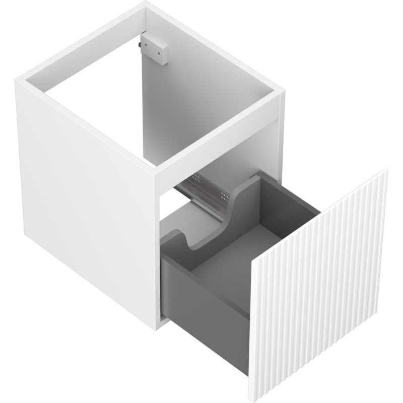 Specifikace produktu: Šířka: 40 cm Výška: 47 cm Hloubka: 46 cm Barva korpusu: Matná bílá Materiál korpusu: Lakovaná deska Barva čela: Matná bílá Materiál čela: Lakovaná MDF deska Struktura čela: Drážkovaná Počet zásuvek: 1 Prostorná zásuvka s funkcí tlumeného dovírání Plný výsuv pro snadný přístup k obsahu zásuvky Povrch odolný vůči UV záření Kombinovatelný s pracovní deskou nebo umyvadlem Otis, Vela Smontovaný produkt
