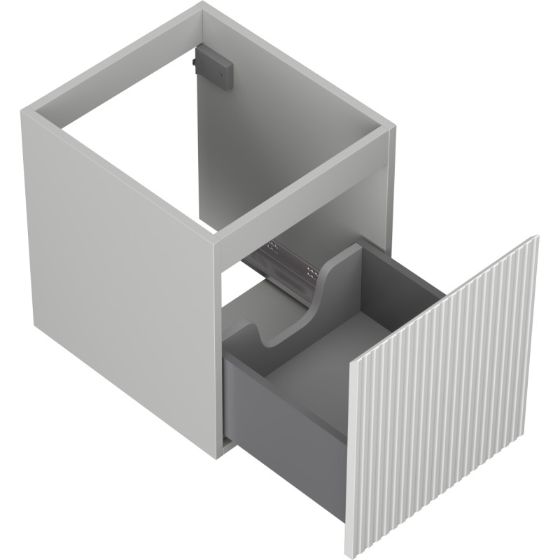 Specifikace produktu: Šířka: 40 cm Výška: 47 cm Hloubka: 46 cm Barva korpusu: Matně šedá Materiál korpusu: Lakovaná deska Barva čela: Matně šedá Materiál čela: Lakovaná MDF deska Struktura čela: Drážkovaná Počet zásuvek: 1 Prostorná zásuvka s funkcí tlumeného dovírání Plný výsuv pro snadný přístup k obsahu zásuvky Povrch odolný vůči UV záření Lze doplnit pracovní deskou nebo umyvadlem Otis, Vela Smontovaný produkt