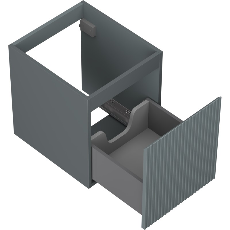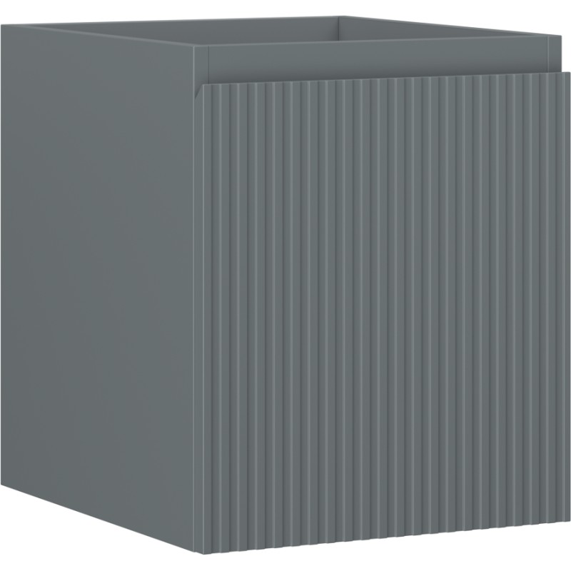 Specifikace produktu: Šířka: 40 cm Výška: 47 cm Hloubka: 46 cm Barva korpusu: Matný grafit Materiál korpusu: Lakovaná deska Barva čela: Matný grafit Materiál čela: Lakovaná MDF deska Struktura čela: Drážkovaná Počet zásuvek: 1 Prostorná zásuvka s funkcí tlumeného dovírání Plný výsuv pro snadný přístup k obsahu zásuvky Povrch odolný vůči UV záření Kombinovatelný s pracovní deskou nebo umyvadlem Otis, Vela Smontovaný produkt