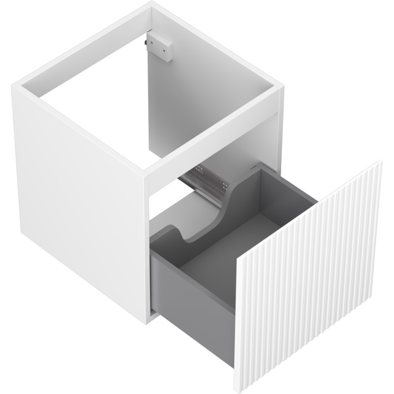 Specifikace produktu: Šířka: 45 cm Výška: 47 cm Hloubka: 46 cm Barva korpusu: Matná bílá Materiál korpusu: Lakovaná deska Barva čela: Matná bílá Materiál čela: Lakovaná MDF deska Struktura čela: Drážkovaná Počet zásuvek: 1 Prostorná zásuvka s funkcí tlumeného dovírání Plný výsuv pro snadný přístup k obsahu zásuvky Povrch odolný vůči UV záření Kombinovatelný s pracovní deskou nebo umyvadlem Otis, Vela Smontovaný produkt
