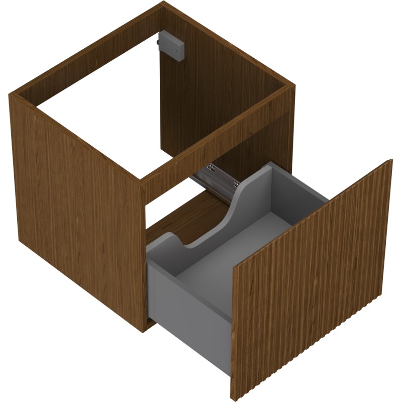 Specifikace produktu: Šířka: 50 cm Výška: 47 cm Hloubka: 46 cm Barva korpusu: Ořech Materiál korpusu: Deska + PVC fólie Barva čela: Ořech Materiál čela: MDF deska + PVC fólie Struktura čela: Drážkovaná Počet zásuvek: 1 Prostorná zásuvka s funkcí tlumeného dovírání Plný výsuv pro snadný přístup k obsahu zásuvky Povrch odolný vůči UV záření Lze doplnit pracovní deskou nebo umyvadlem Otis, Vela Smontovaný produkt