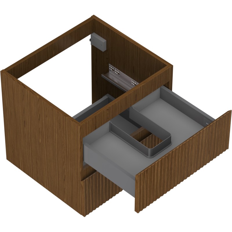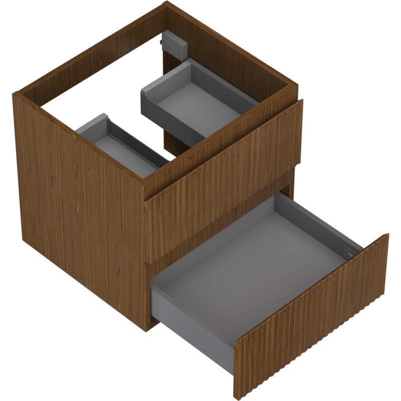 Specifikace produktu: Šířka: 50 cm Výška: 47 cm Hloubka: 46 cm Barva korpusu: Ořech Materiál korpusu: Deska + PVC fólie Barva čela: Ořech Materiál čela: MDF deska + PVC fólie Struktura čela: Drážkovaná Počet zásuvek: 2 Prostorná zásuvka s funkcí tlumeného dovírání Plný výsuv pro snadný přístup k obsahu zásuvky Povrch odolný vůči UV záření Kombinovatelný s pracovní deskou nebo umyvadlem Otis, Vela Smontovaný produkt