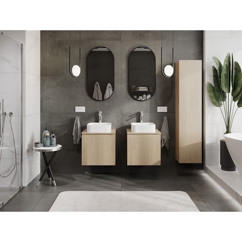 Specifikace produktu: Rozměry skříňky: Šířka: 50 cm Výška: 47 cm Hloubka: 46 cm Barva korpusu: Dub Materiál korpusu: Deska + PVC fólie Barva čela: Dub Materiál čela: MDF deska + PVC fólie Struktura čela: Drážkovaná Počet zásuvek: 1 Prostorná zásuvka s funkcí tlumeného dovírání Plný výsuv pro snadný přístup k obsahu zásuvky Povrch odolný vůči UV záření Rozměry pracovní desky: Šířka: 50,6 cm Hloubka: 46,5 cm Tloušťka: 1,8 cm Barva pracovní desky: Dub Materiál pracovní desky: MDF deska + PVC fólie Povrch odolný vůči UV záření Ideální jako podstavec pro umyvadla na desku Sestavený produkt