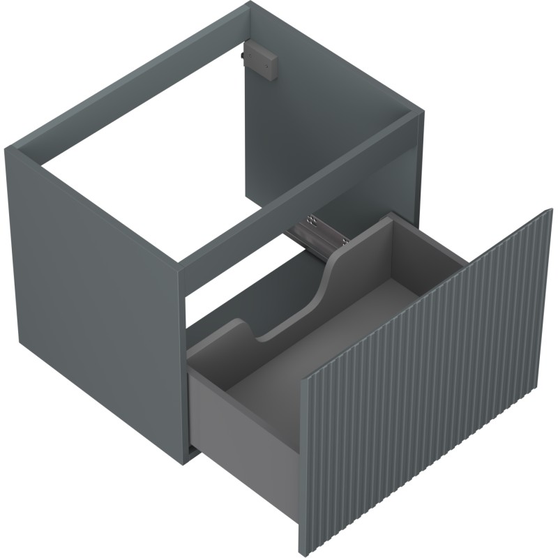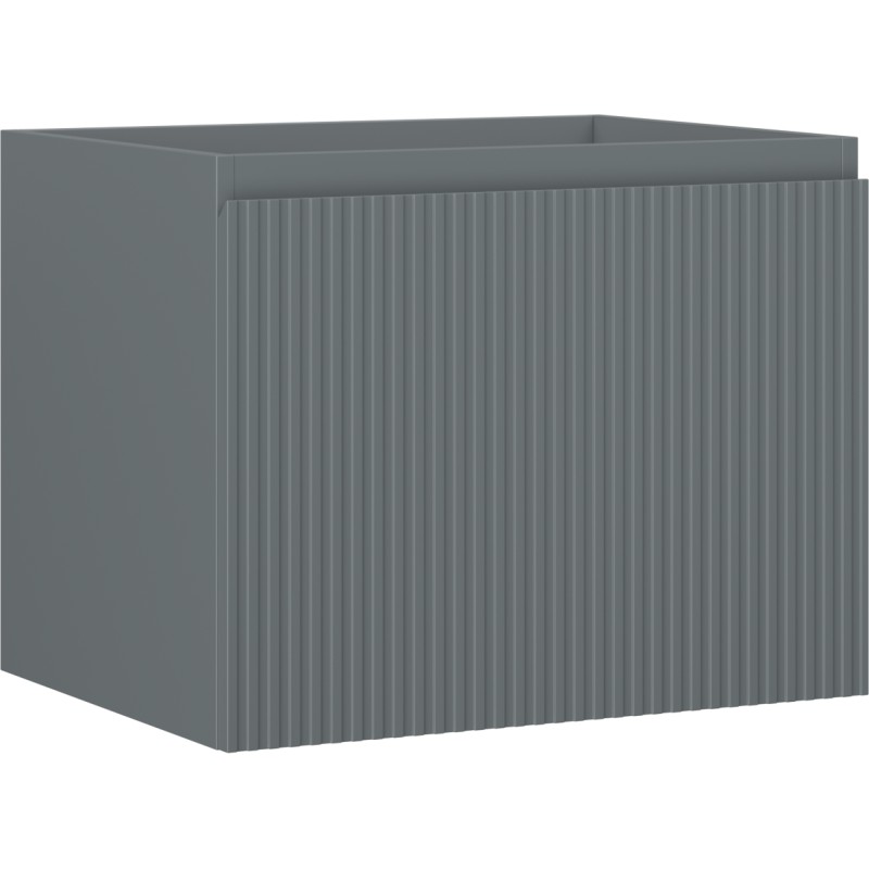 Specifikace produktu: Šířka: 60 cm Výška: 47 cm Hloubka: 46 cm Barva korpusu: Matný grafit Materiál korpusu: Lakovaná deska Barva čela: Matný grafit Materiál čela: Lakovaná MDF deska Struktura čela: Drážkovaná Počet zásuvek: 1 Prostorná zásuvka s funkcí tlumeného dovírání Plný výsuv pro snadný přístup k obsahu zásuvky Povrch odolný vůči UV záření Kombinovatelný s pracovní deskou nebo umyvadlem Otis, Vela Smontovaný produkt