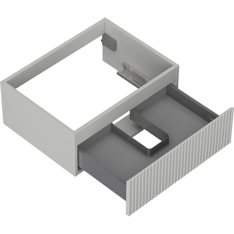 Specifikace produktu: Šířka: 60 cm Výška: 23,5 cm Hloubka: 46 cm Barva korpusu: Matně šedá Materiál korpusu: Lakovaná deska Barva čela: Matně šedá Materiál čela: Lakovaná MDF deska Struktura čela: Drážkovaná Počet zásuvek: 1 Prostorná zásuvka s funkcí tlumeného dovírání Plný výsuv pro snadný přístup k obsahu zásuvky Povrch odolný vůči UV záření Kombinovatelný s pracovní deskou nebo umyvadlem Otis, Vela Smontovaný produkt
