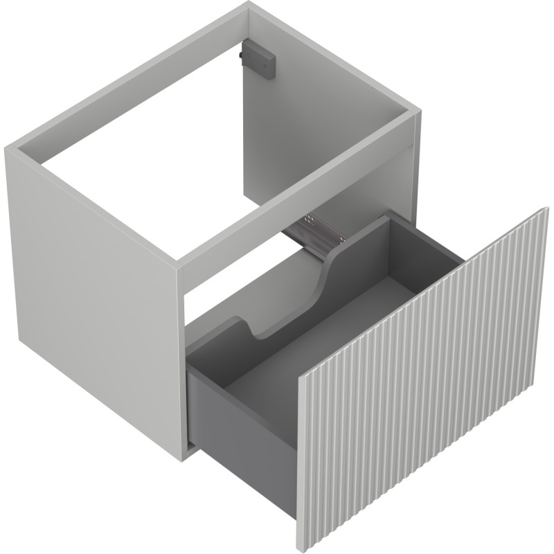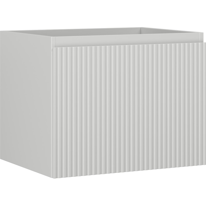 Specifikace produktu: Šířka: 60 cm Výška: 47 cm Hloubka: 46 cm Barva korpusu: Matně šedá Materiál korpusu: Lakovaná deska Barva čela: Matně šedá Materiál čela: Lakovaná MDF deska Struktura čela: Drážkovaná Počet zásuvek: 1 Prostorná zásuvka s funkcí tlumeného dovírání Plný výsuv pro snadný přístup k obsahu zásuvky Povrch odolný vůči UV záření Kombinovatelný s pracovní deskou nebo umyvadlem Otis, Vela Smontovaný produkt