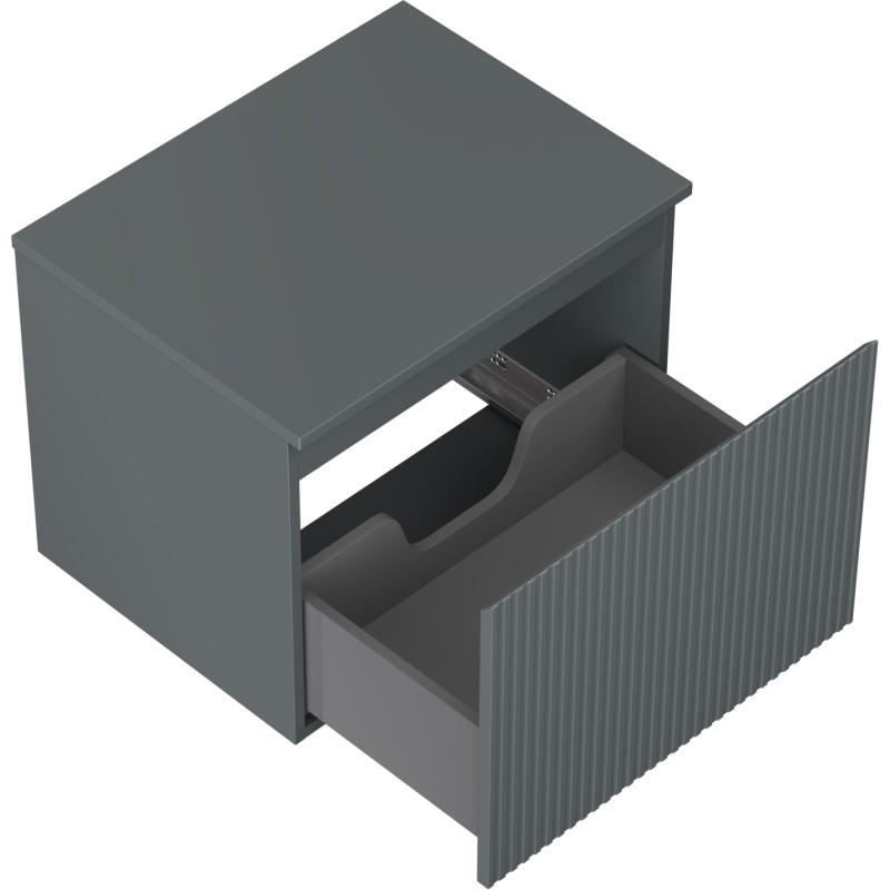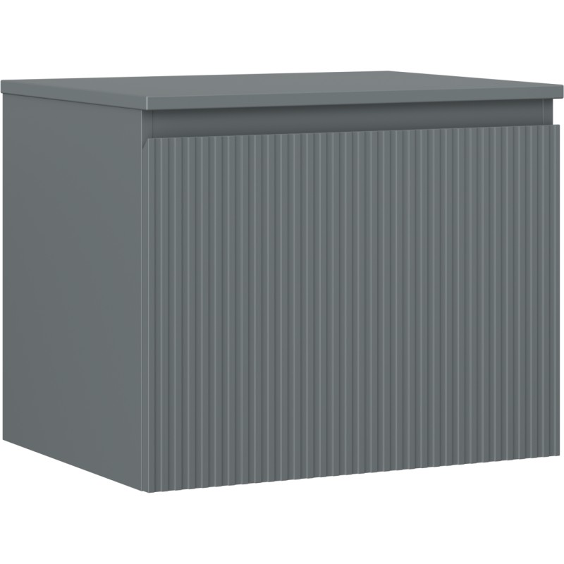 Specifikace produktu: Rozměry skříňky: Šířka: 60 cm Výška: 47 cm Hloubka: 46 cm Barva korpusu: Matný grafit Materiál korpusu: Lakovaná deska Barva čela: Matný grafit Materiál čela: Lakovaná MDF deska Struktura čela: Drážkovaná Počet zásuvek: 1 Prostorná zásuvka s funkcí tlumeného dovírání Plný výsuv pro snadný přístup k obsahu zásuvky Povrch odolný vůči UV záření Rozměry pracovní desky: Šířka: 60,6 cm Hloubka: 46,5 cm Tloušťka: 1,8 cm Barva pracovní desky: Matný grafit Materiál pracovní desky: Lakovaná MDF deska Povrch odolný vůči UV záření Ideální jako podstavec pro umyvadla na desku Sestavený produkt