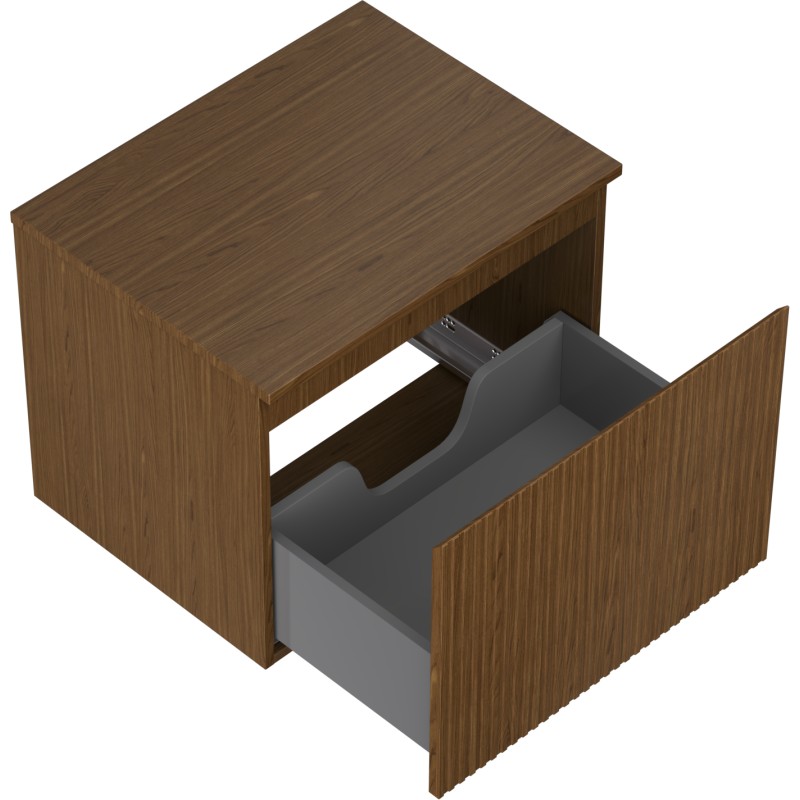 Specifikace produktu: Rozměry skříňky: Šířka: 60 cm Výška: 47 cm Hloubka: 46 cm Barva korpusu: Ořech Materiál korpusu: Deska + PVC fólie Barva čela: Ořech Materiál čela: MDF deska + PVC fólie Struktura čela: Drážkovaná Počet zásuvek: 1 Prostorná zásuvka s funkcí tlumeného dovírání Plný výsuv pro snadný přístup k obsahu zásuvky Povrch odolný vůči UV záření Rozměry pracovní desky: Šířka: 60,6 cm Hloubka: 46,5 cm Tloušťka: 1,8 cm Barva pracovní desky: Ořech Materiál pracovní desky: MDF deska + PVC fólie Povrch odolný vůči UV záření Ideální jako podstavec pro umyvadla na desku Sestavený produkt