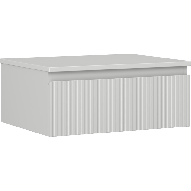Specifikace produktu: Rozměry skříňky: Šířka: 60 cm Výška: 23,5 cm Hloubka: 46 cm Barva korpusu: Matně šedá Materiál korpusu: Lakovaná deska Barva čela: Matně šedá Materiál čela: Lakovaná MDF deska Struktura čela: Drážkovaná Počet zásuvek: 1 Prostorná zásuvka s funkcí tlumeného dovírání Plný výsuv pro snadný přístup k obsahu zásuvky Povrch odolný vůči UV záření Rozměry pracovní desky: Šířka: 60,6 cm Hloubka: 46,5 cm Tloušťka: 1,8 cm Barva pracovní desky: Matně šedá Materiál pracovní desky: Lakovaná MDF deska Povrch odolný vůči UV záření Ideální jako podstavec pro umyvadla na desku Sestavený produkt