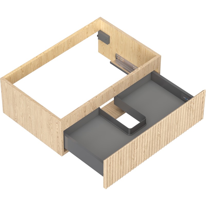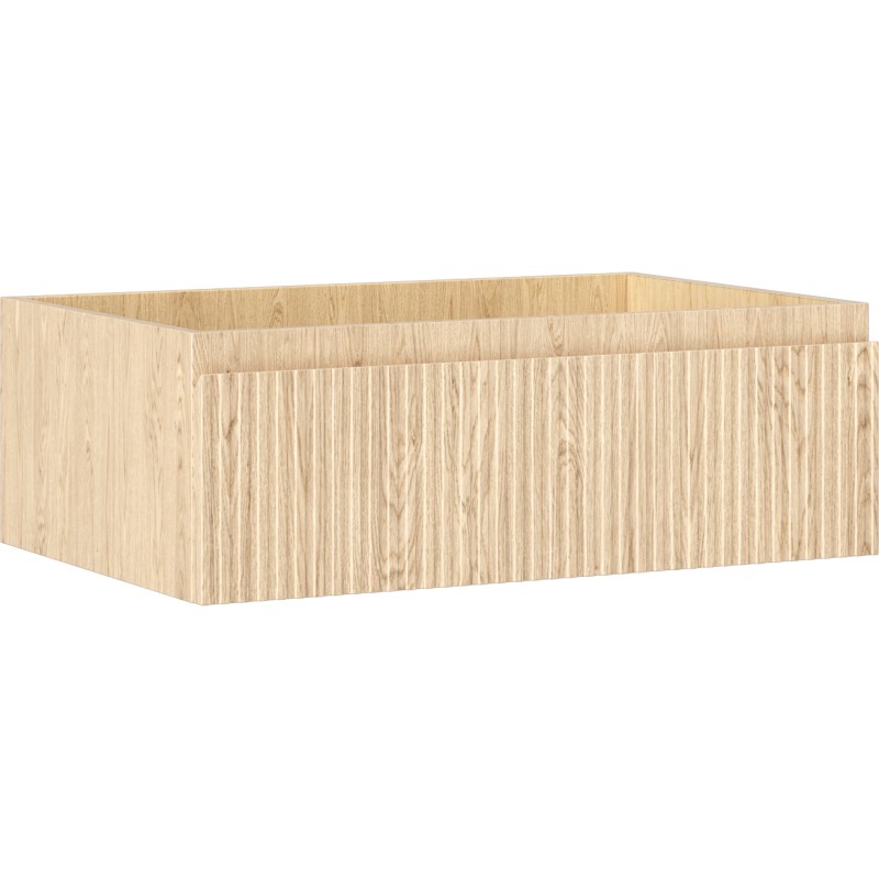 Specifikace produktu: Šířka: 70 cm Výška: 23,5 cm Hloubka: 46 cm Barva korpusu: Dub Materiál korpusu: Deska + PVC fólie Barva čela: Dub Materiál čela: MDF deska + PVC fólie Struktura čela: Drážkovaná Počet zásuvek: 1 Prostorná zásuvka s funkcí tlumeného dovírání Plný výsuv pro snadný přístup k obsahu zásuvky Povrch odolný vůči UV záření Kombinovatelný s pracovní deskou nebo umyvadlem Otis, Vela Smontovaný produkt