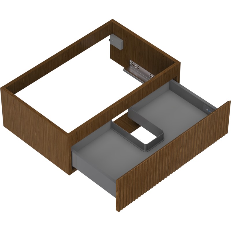 Specifikace produktu: Šířka: 70 cm Výška: 23,5 cm Hloubka: 46 cm Barva korpusu: Ořech Materiál korpusu: Deska + PVC fólie Barva čela: Ořech Materiál čela: MDF deska + PVC fólie Struktura čela: Drážkovaná Počet zásuvek: 1 Prostorná zásuvka s funkcí tlumeného dovírání Plný výsuv pro snadný přístup k obsahu zásuvky Povrch odolný vůči UV záření Kombinovatelný s pracovní deskou nebo umyvadlem Otis, Vela Sestavený produkt