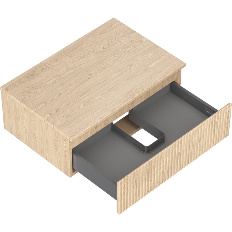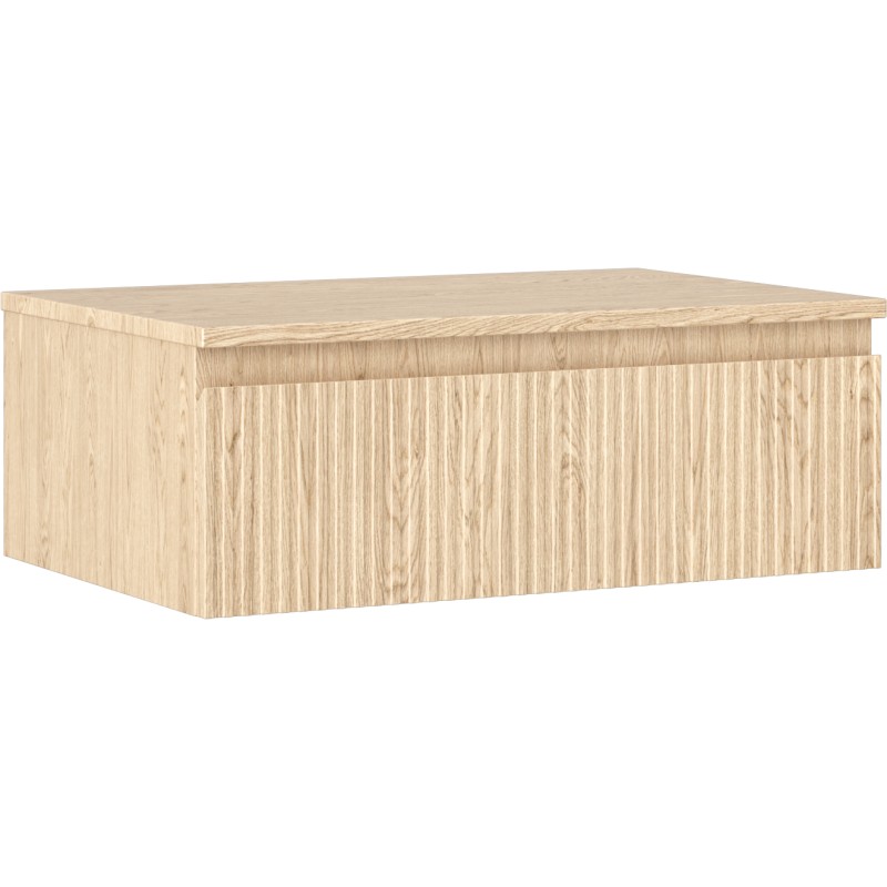 Specifikace produktu: Rozměry skříňky: Šířka: 70 cm Výška: 23,5 cm Hloubka: 46 cm Barva korpusu: Dub Materiál korpusu: Deska + PVC fólie Barva čela: Dub Materiál čela: MDF deska + PVC fólie Struktura čela: Drážkovaná Počet zásuvek: 1 Prostorná zásuvka s funkcí tichého dovírání Plný výsuv pro snadný přístup k obsahu zásuvky Povrch odolný vůči UV záření Rozměry pracovní desky: Šířka: 70,6 cm Hloubka: 46,5 cm Tloušťka: 1,8 cm Barva pracovní desky: Dub Materiál pracovní desky: MDF deska + PVC fólie Povrch odolný vůči UV záření Ideální jako podstavec pro umyvadla na desku Sestavený produkt