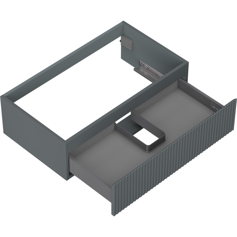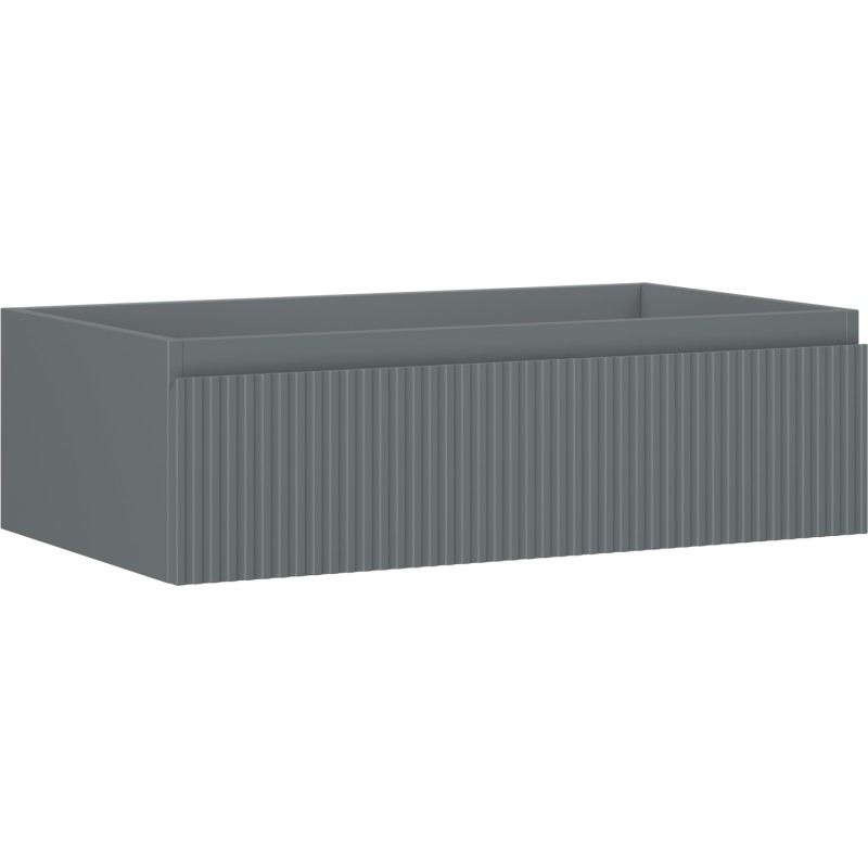 Specifikace produktu: Šířka: 80 cm Výška: 23,5 cm Hloubka: 46 cm Barva korpusu: Matný grafit Materiál korpusu: Lakovaná deska Barva čela: Matný grafit Materiál čela: Lakovaná MDF deska Struktura čela: Drážkovaná Počet zásuvek: 1 Prostorná zásuvka s funkcí tlumeného dovírání Plný výsuv pro snadný přístup k obsahu zásuvky Povrch odolný vůči UV záření Kombinovatelný s pracovní deskou nebo umyvadlem Otis, Vela Smontovaný produkt