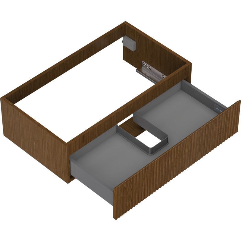 Specifikace produktu: Šířka: 80 cm Výška: 23,5 cm Hloubka: 46 cm Barva korpusu: Ořech Materiál korpusu: Deska + PVC fólie Barva čela: Ořech Materiál čela: MDF deska + PVC fólie Struktura čela: Drážkovaná Počet zásuvek: 1 Prostorná zásuvka s funkcí tlumeného dovírání Plný výsuv pro snadný přístup k obsahu zásuvky Povrch odolný vůči UV záření Kombinovatelný s pracovní deskou nebo umyvadlem Otis, Vela Sestavený produkt