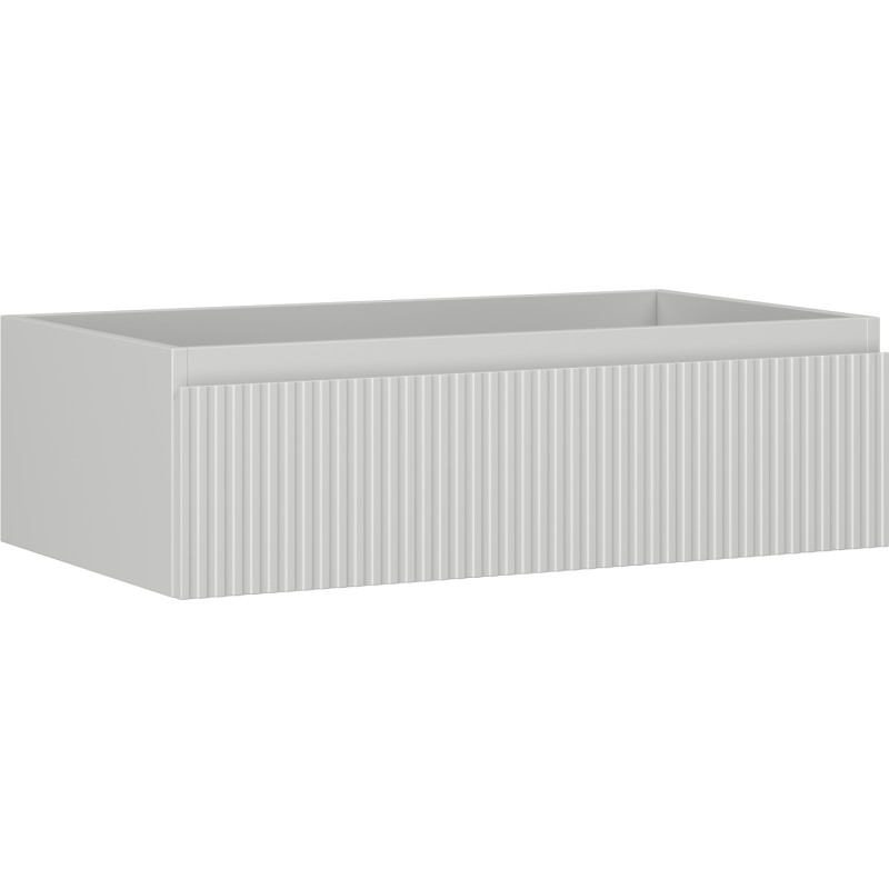 Specifikace produktu: Šířka: 80 cm Výška: 23,5 cm Hloubka: 46 cm Barva korpusu: Matně šedá Materiál korpusu: Lakovaná deska Barva čela: Matně šedá Materiál čela: Lakovaná MDF deska Struktura čela: Drážkovaná Počet zásuvek: 1 Prostorná zásuvka s funkcí tlumeného dovírání Plný výsuv pro snadný přístup k obsahu zásuvky Povrch odolný vůči UV záření Kombinovatelný s pracovní deskou nebo umyvadlem Otis, Vela Smontovaný produkt