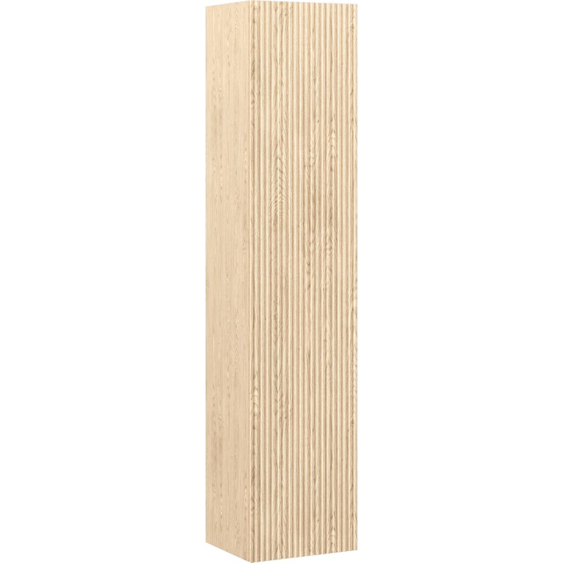 Specifikace produktu: Šířka: 35 cm Výška: 160 cm Hloubka: 30 cm Barva korpusu: Dub Materiál korpusu: Deska + PVC fólie Barva čela: Dub Materiál čela: MDF deska + PVC fólie Konstrukce čela: Drážkovaná Počet dvířek: 1 5 polic (1 pevná prostřední police a 4 nastavitelné police) Panty s funkcí tlumeného dovírání Univerzální montáž dvířek (levé/pravé) Povrch odolný vůči UV záření Produkt smontovaný
