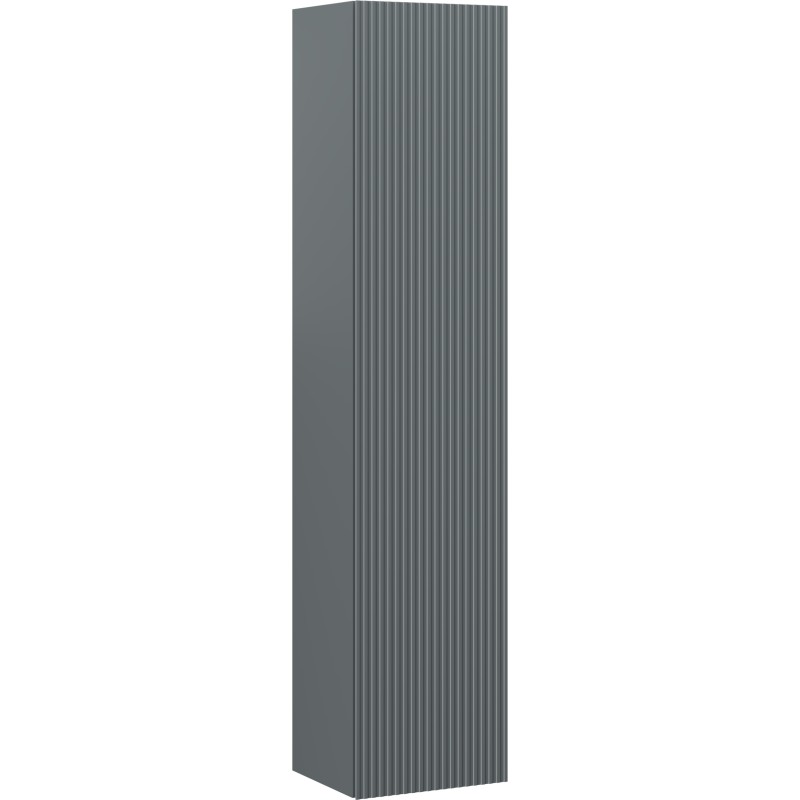 Specifikace produktu: Šířka: 35 cm Výška: 160 cm Hloubka: 30 cm Barva korpusu: Matný grafit Materiál korpusu: Lakovaná deska Barva čela: Matný grafit Materiál čela: Lakovaná MDF deska Konstrukce čela: Drážkovaná Počet dvířek: 1 5 polic (1 pevná prostřední police a 4 nastavitelné police) Panty s funkcí tlumeného dovírání Univerzální montáž dvířek (levé/pravé) Povrch odolný vůči UV záření Produkt smontovaný