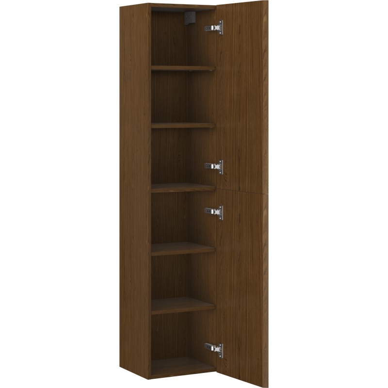Specifikace produktu: Šířka: 35 cm Výška: 160 cm Hloubka: 30 cm Barva korpusu: Ořech Materiál korpusu: Deska + PVC fólie Barva čela: Ořech Materiál čela: MDF deska + PVC fólie Konstrukce čela: Drážkovaná Počet dvířek: 2 5 polic (1 pevná prostřední police a 4 nastavitelné police) Panty s funkcí tlumeného dovírání Univerzální montáž dvířek (levé/pravé) Povrch odolný vůči UV záření Produkt smontovaný