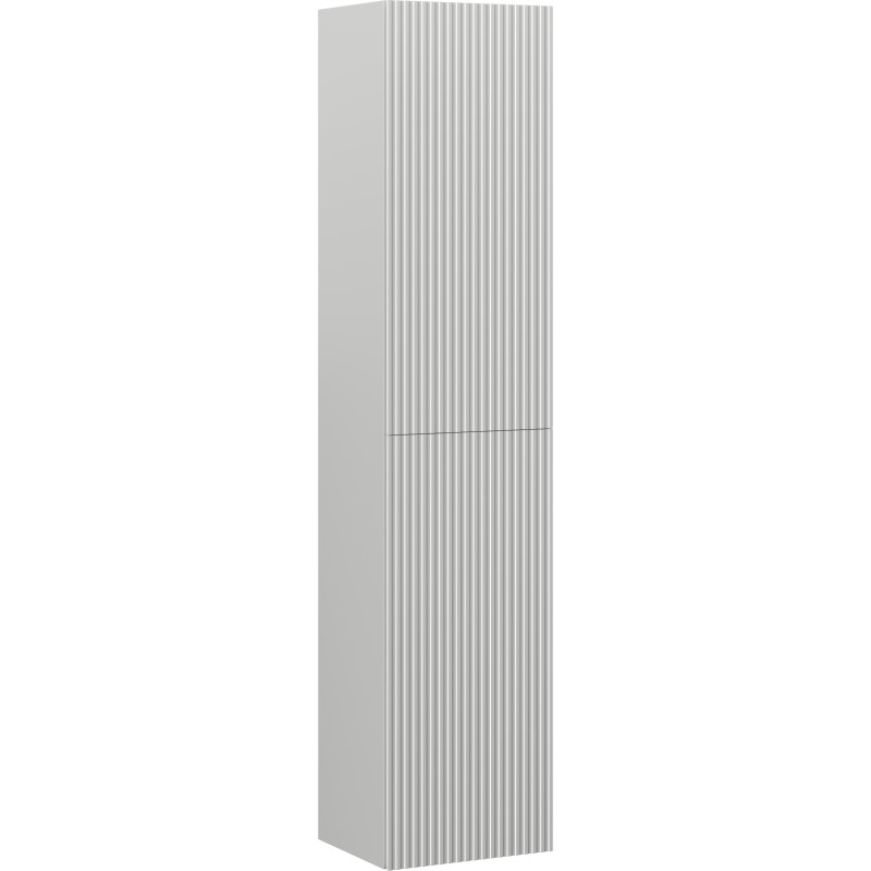 Specifikace produktu: Šířka: 35 cm Výška: 160 cm Hloubka: 30 cm Barva korpusu: Matně šedá Materiál korpusu: Lakovaná deska Barva čela: Matně šedá Materiál čela: Lakovaná MDF deska Konstrukce čela: Drážkovaná Počet dvířek: 2 5 polic (1 pevná prostřední police a 4 nastavitelné police) Panty s funkcí tlumeného dovírání Univerzální montáž dvířek (levé/pravé) Povrch odolný vůči UV záření Produkt smontovaný