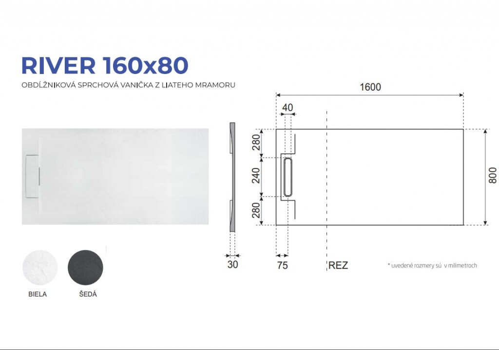 Stylová nízká sprchová vanička z litého mramoru s krytkou z litého mramoru.Povrch vaničky se strukturou imitující přírodní kameň.Vaničky z litého mramoru se vyznačují vysokou pevností a nosností.