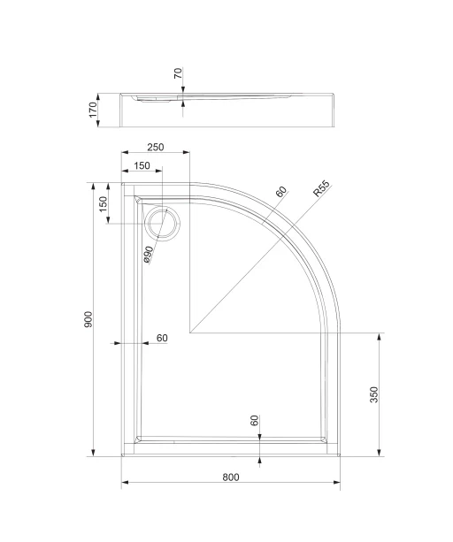 OMNIRES - RIVERSIDE akrylátová sprchová vanička čtvrtkruh, levá 90 x 80 cm bílá lesk /BP/ (RIVERSIDE80/90/LBP)