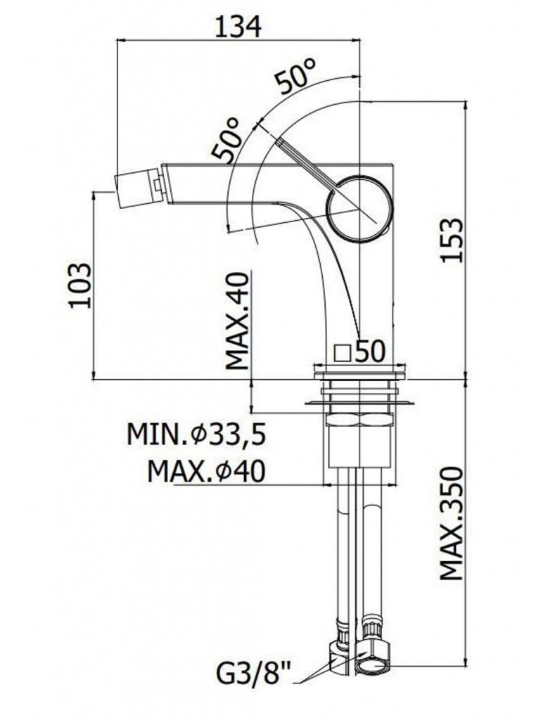 Bidetová stojánková baterie bez výpusti