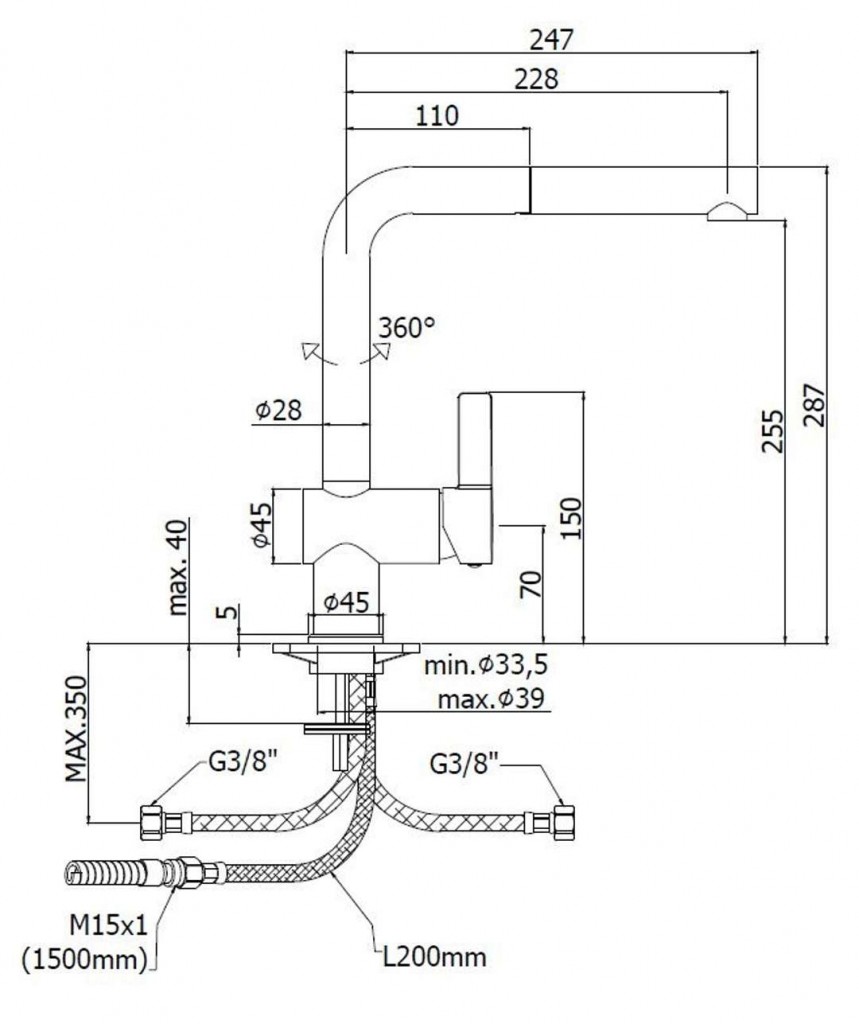 Kuchyňská dřezová stojánková páková baterie s vytahovací sprškou