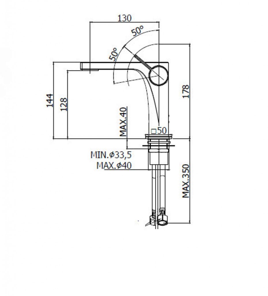 - délka výtoku 130 mm, komfortní zóna 128 mm