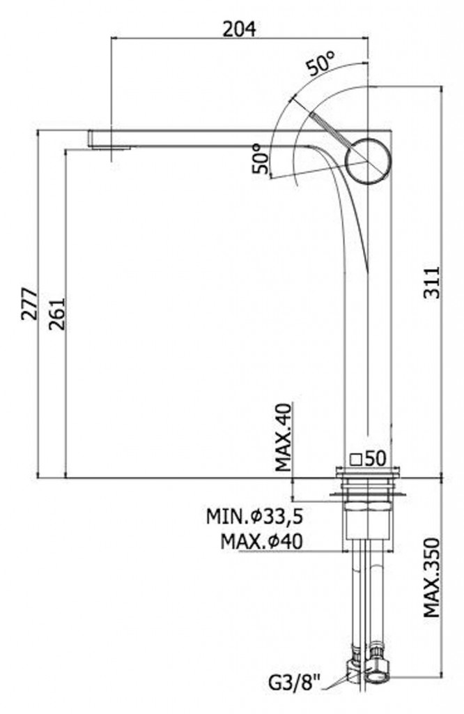 - délka výtoku 204 mm