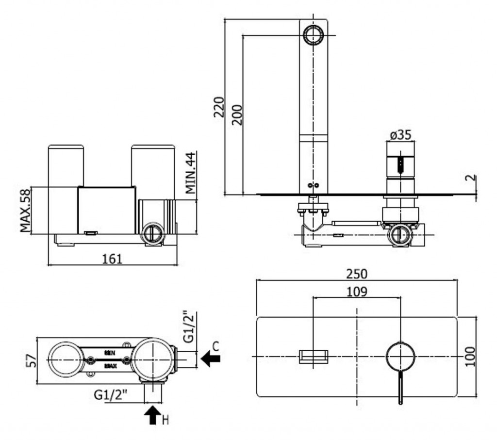 Umyvadlová páková baterie pod omítku s tělesem