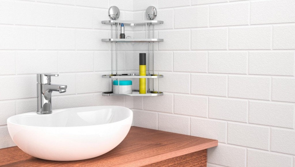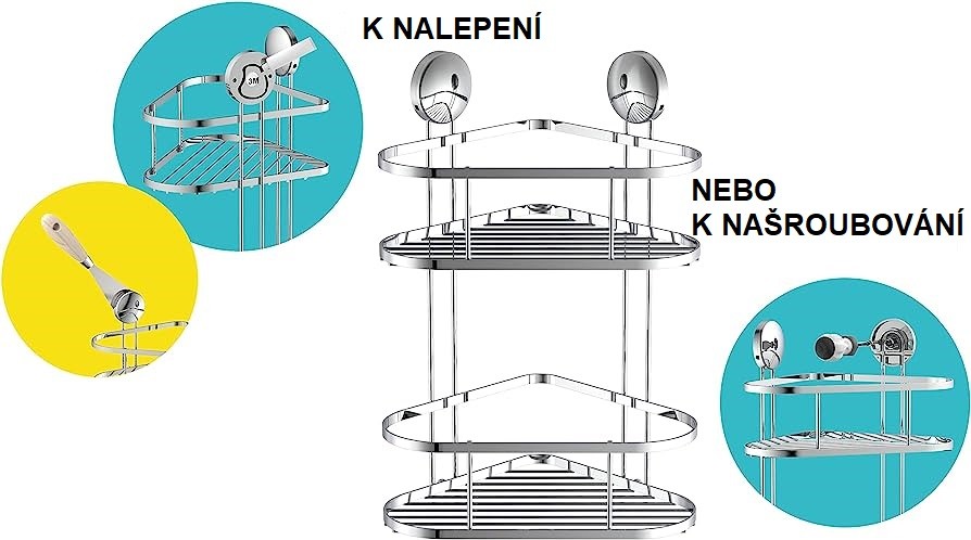 Sprchová nástěnná police 2 úrovně, chrom, k nalepení nebo přišroubování