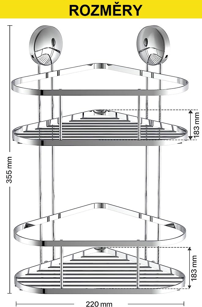 Sprchová nástěnná police 2 úrovně, chrom, k nalepení nebo přišroubování sprchový koš se 2 patry k lepení nebo šroubování Instalace bez vrtání, není potřeba žádný další upevňovací materiál max 25 kg Materiál: nerezová ocel, chromovaná (celý popis)