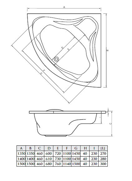 - 1350 × 1350 mm (270 l)