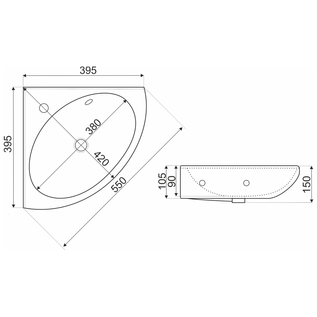 Rohové závěsné umyvadlo ELF NAR ze sanitární keramiky