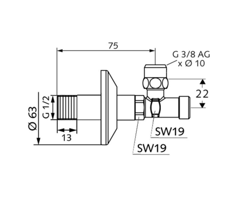 - rohový ventil se zabezpečeným ovládáním
