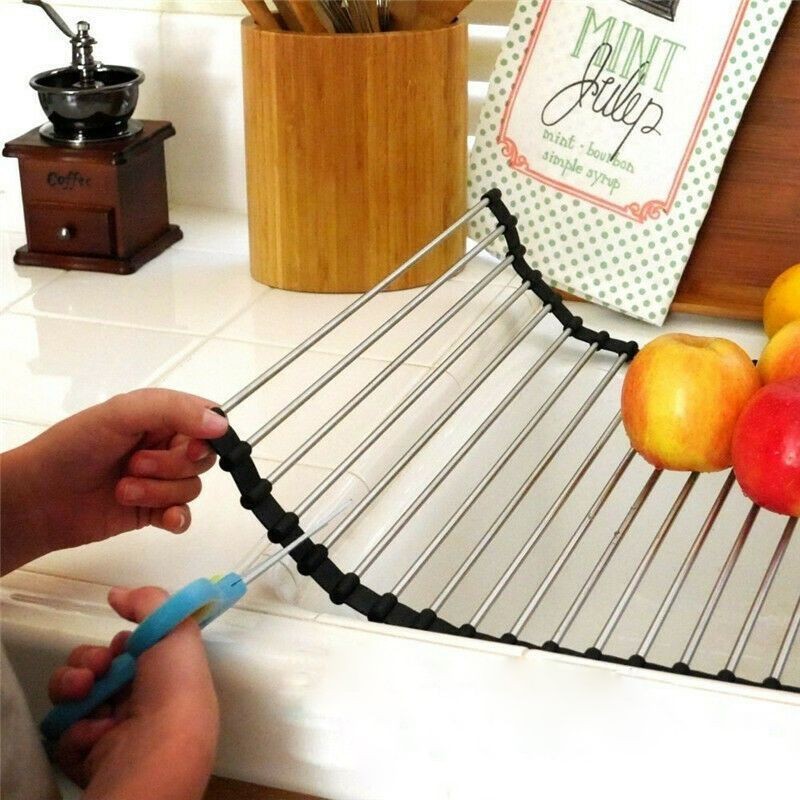 Kuchyňský odkapávač je praktický pomocník v kuchyni, sloužící k odkapávání nejen nádobí po umytí, ale i ovoce a zeleniny. Pokud ho zrovna nepotřebujete, je možné jednoduše srolovat a umístit do kuchyňské linky.