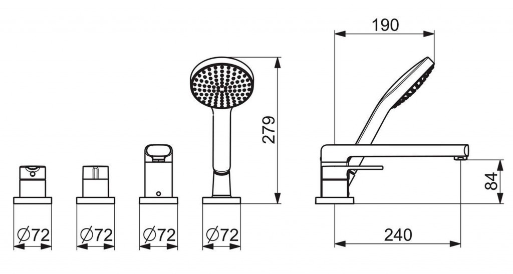 Čtyřotvorová baterie pro instalaci na okraj vany