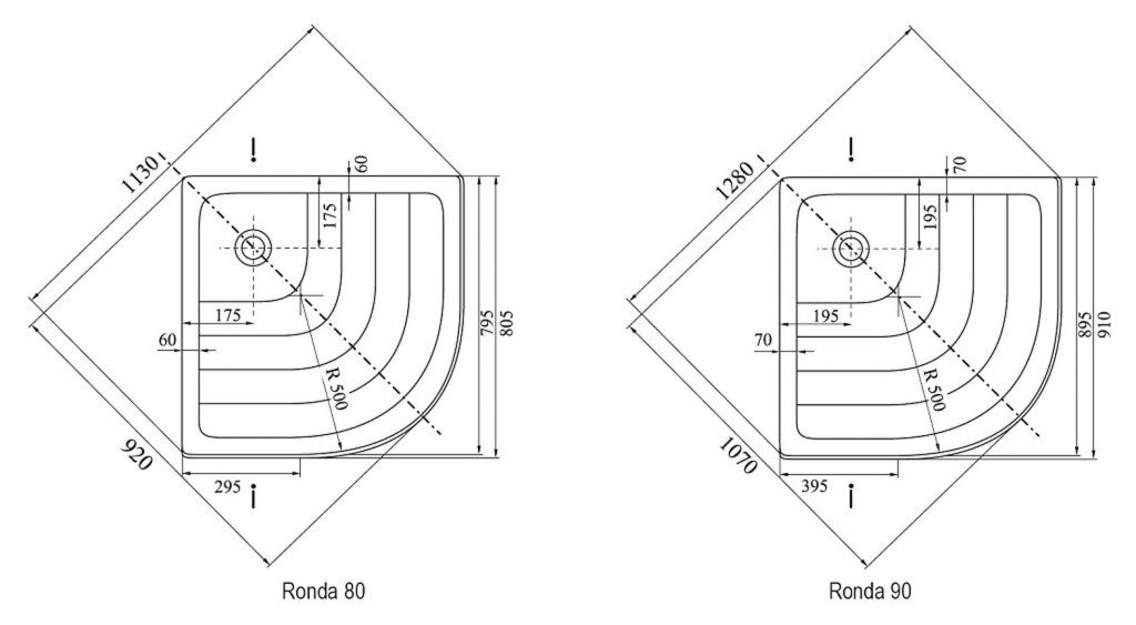 Čtvrtkruhová sprchová vanička Ronda-80 EX