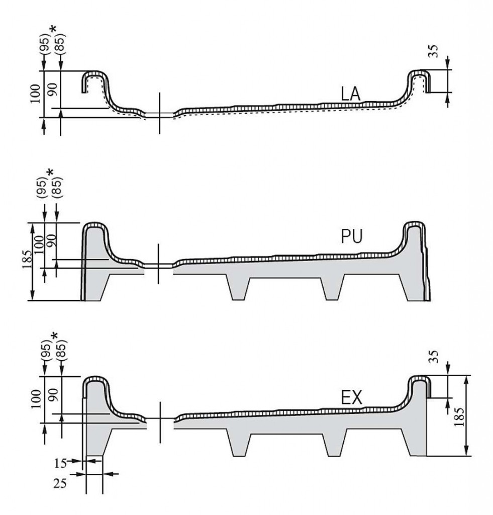 - vyztužení: EX - polyuretanová pěna se skelným vláknem