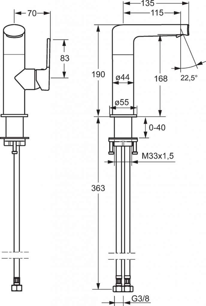 Páková umyvadlová baterie Ronda, s otočným výtokem