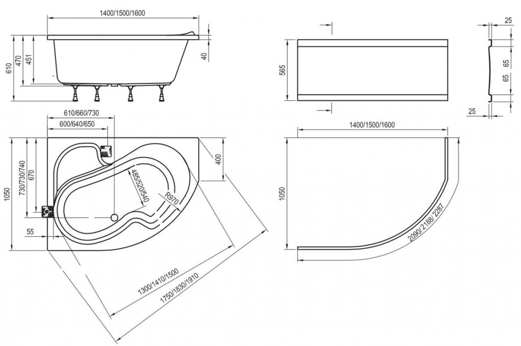 - panely a podpora vany nejsou součástí balení (viz. související výrobky)