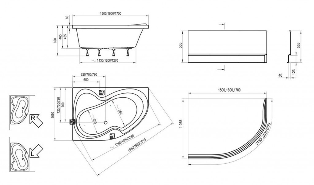 - čelní panel, instalační příslušenství, vanovou odtokovou a přepadovou soupravu je třeba objednat samostatně