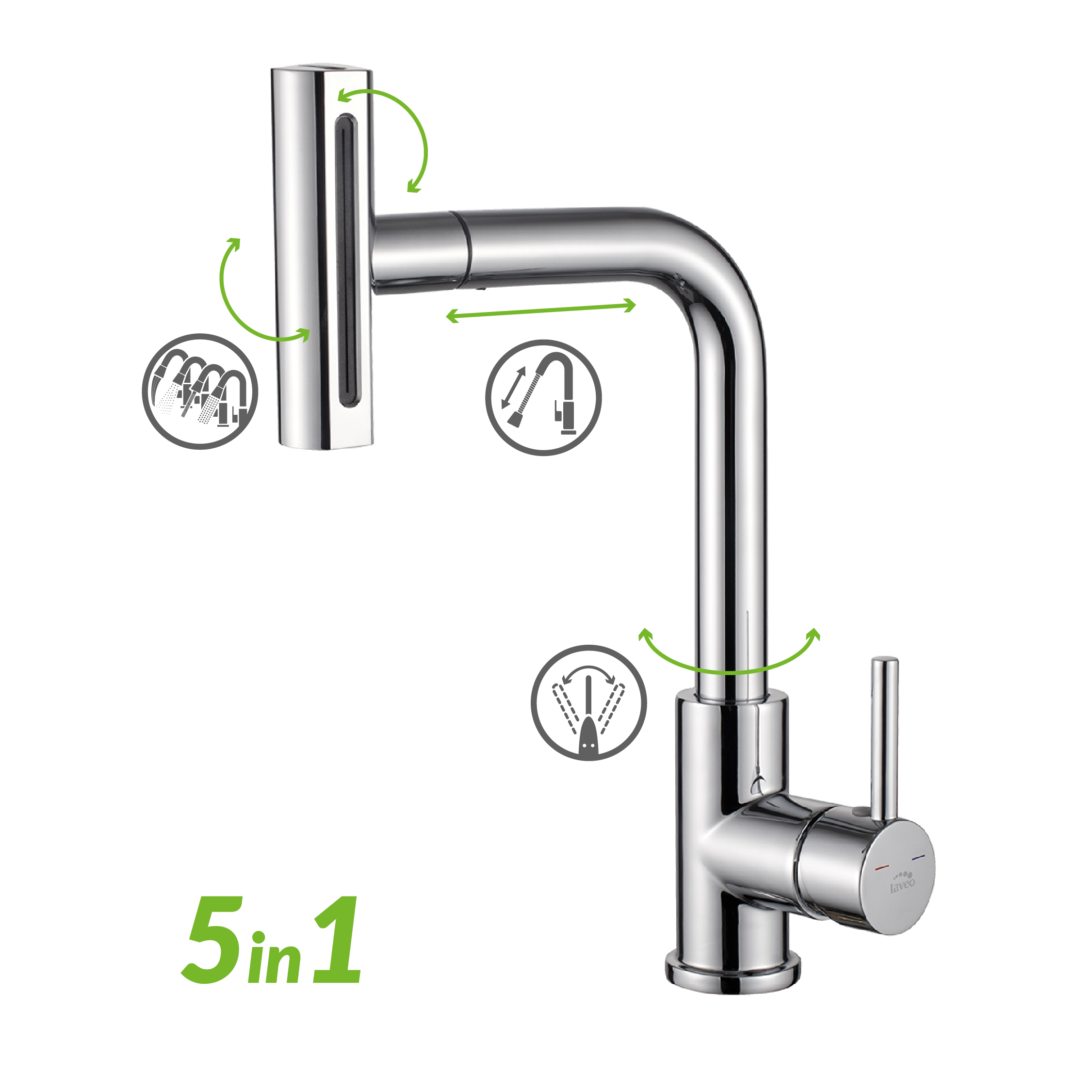 Baterie Rotaro je dostupná ve třech elegantních barevných variantách – černá, chrom a grafit. Díky této nabídce si snadno vyberete provedení, které se dokonale přizpůsobí stylu vaší kuchyně – ať už preferujete moderní minimalismus, industriální charakter nebo klasickou eleganci.