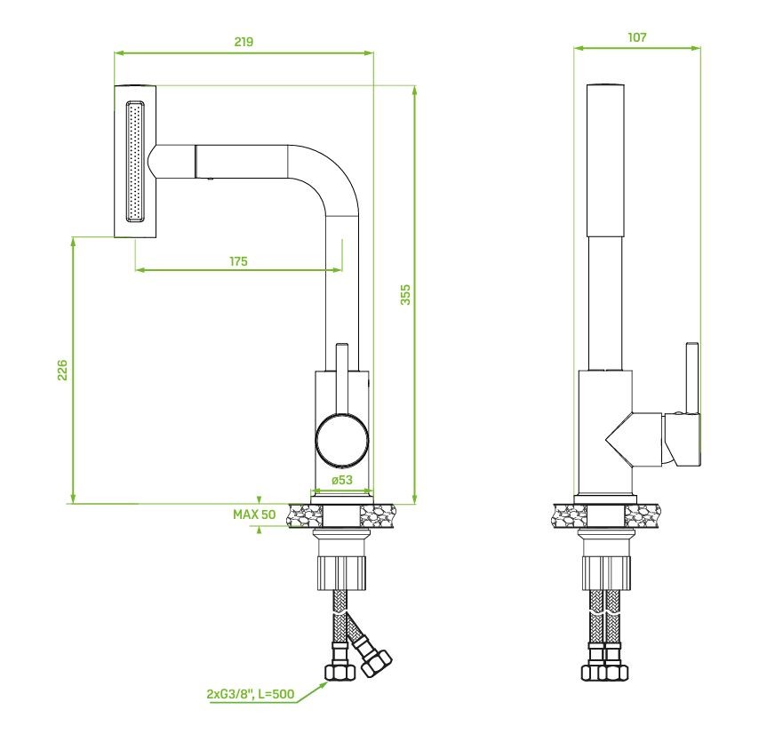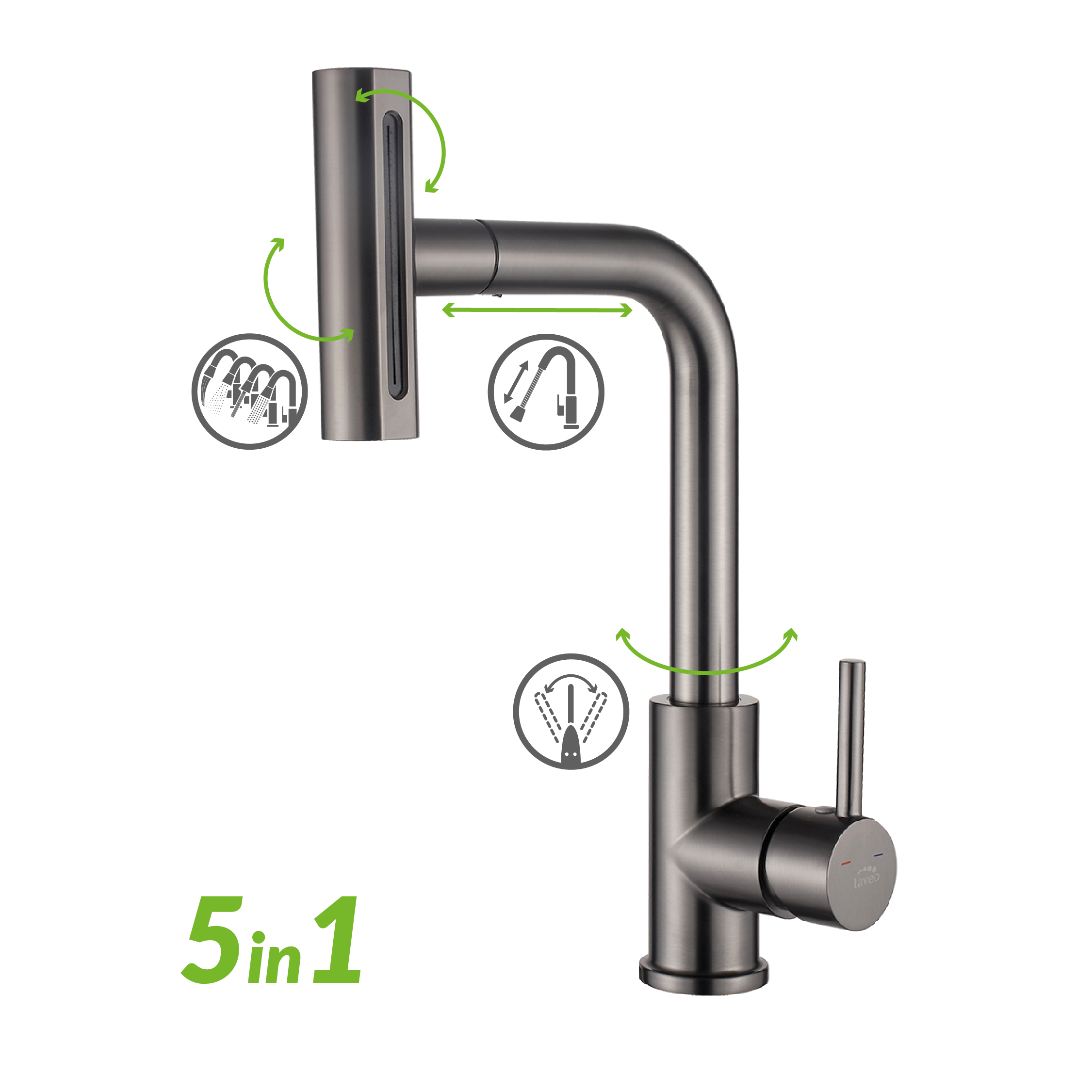 Baterie Rotaro je dostupná ve třech elegantních barevných variantách – černá, chrom a grafit. Díky této nabídce si snadno vyberete provedení, které se dokonale přizpůsobí stylu vaší kuchyně – ať už preferujete moderní minimalismus, industriální charakter nebo klasickou eleganci.