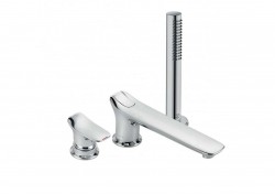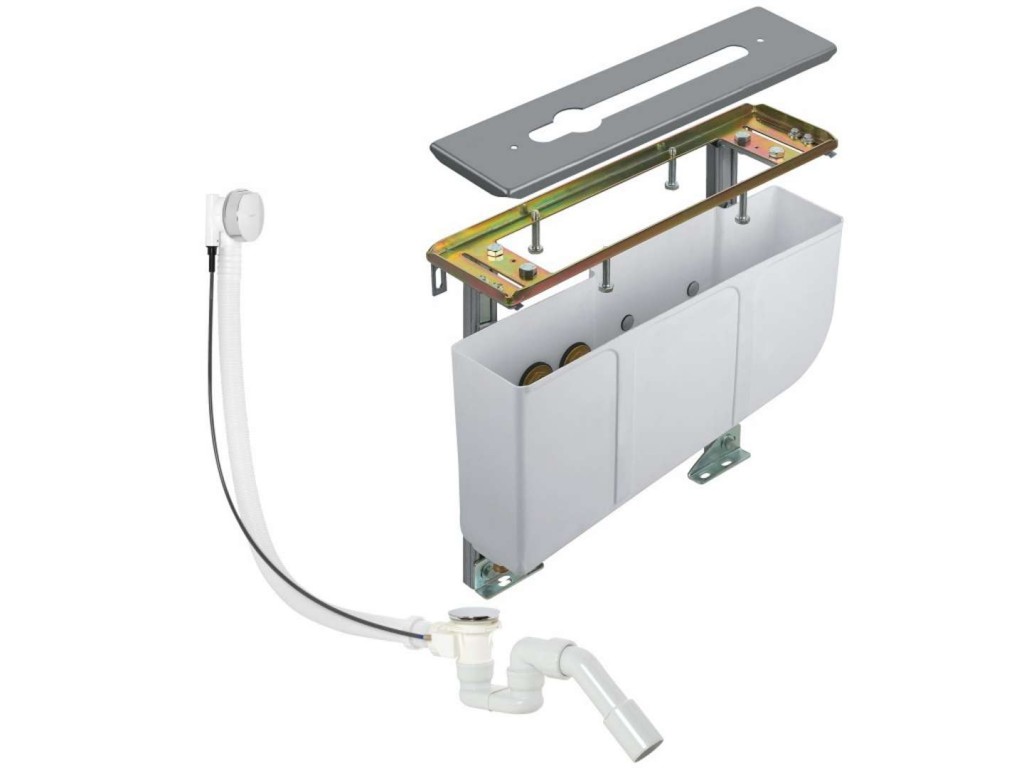 Odtoková souprava a montážní těleso pro tříotvorovou baterii na okraj vany