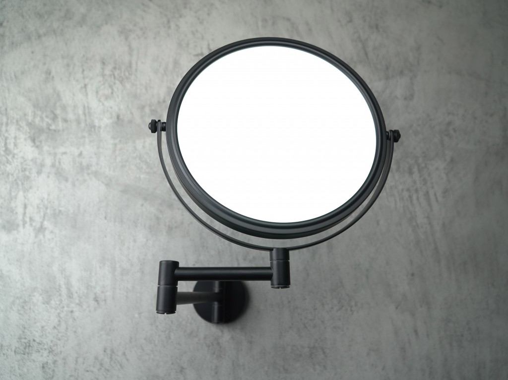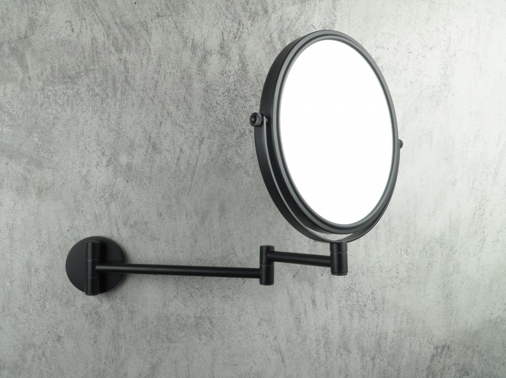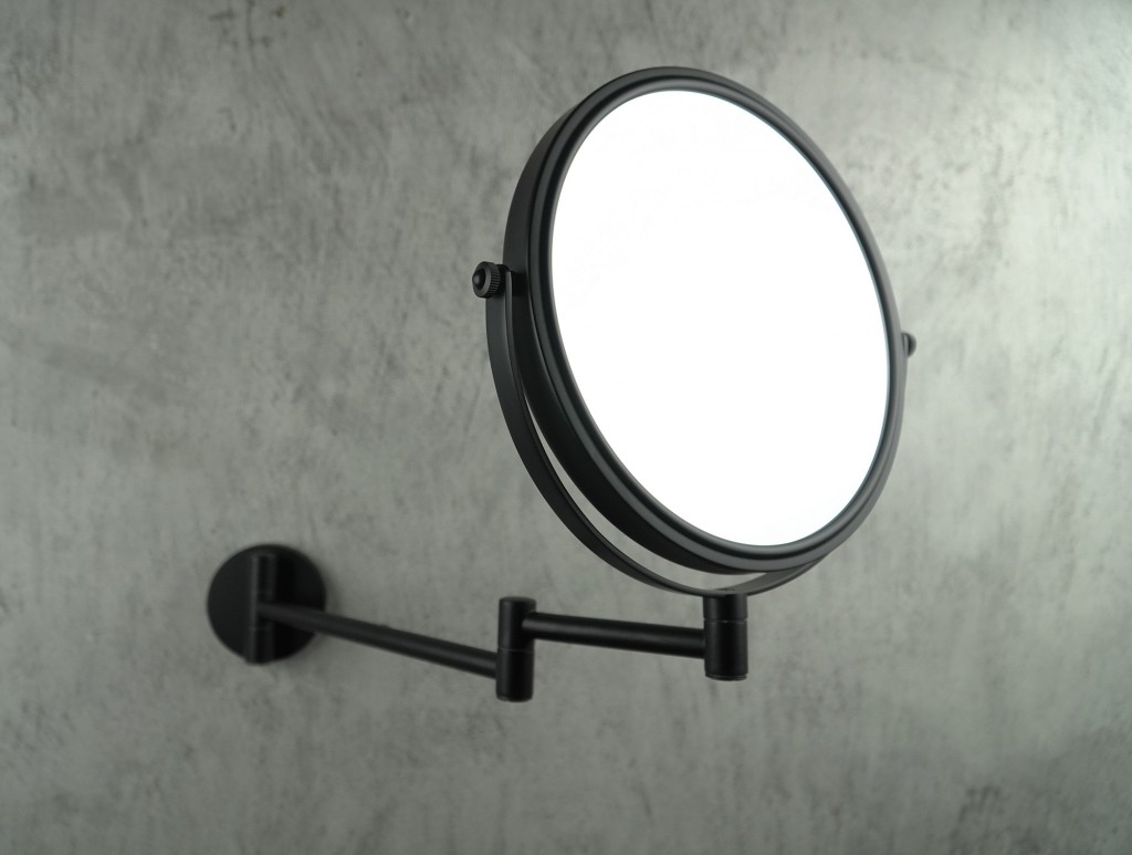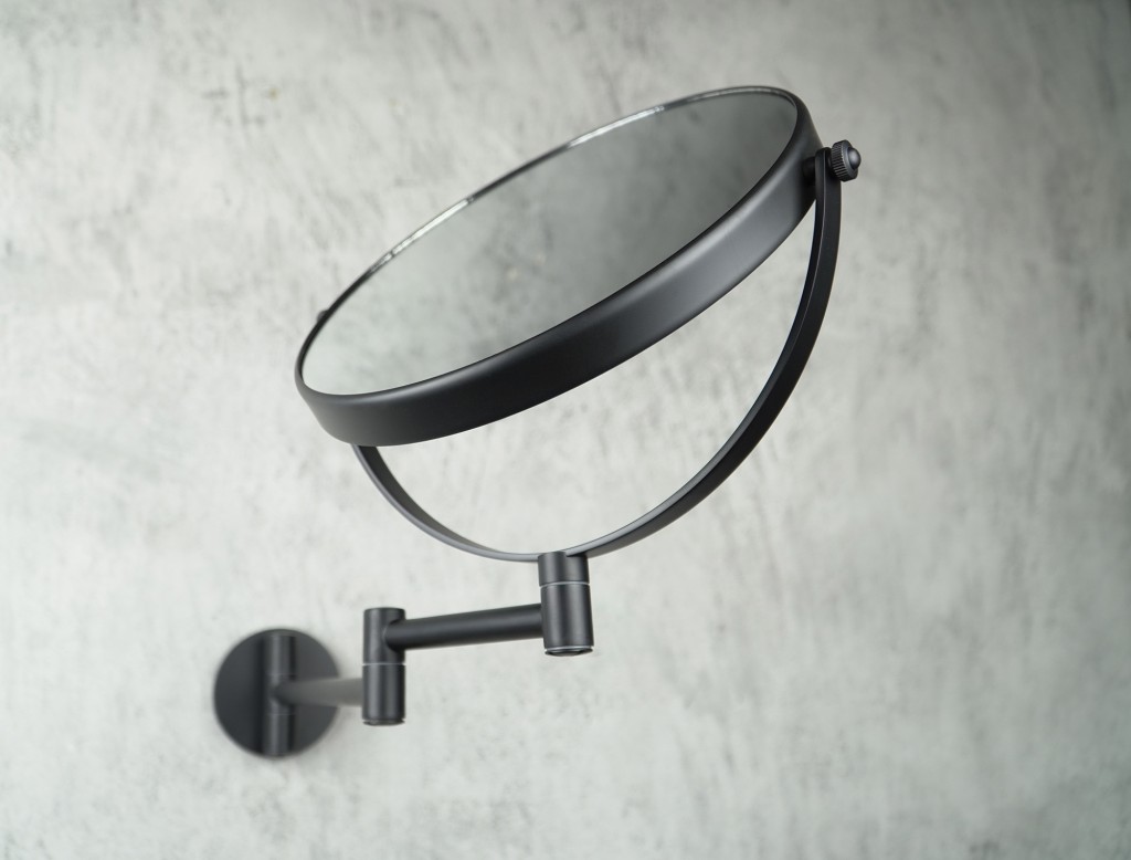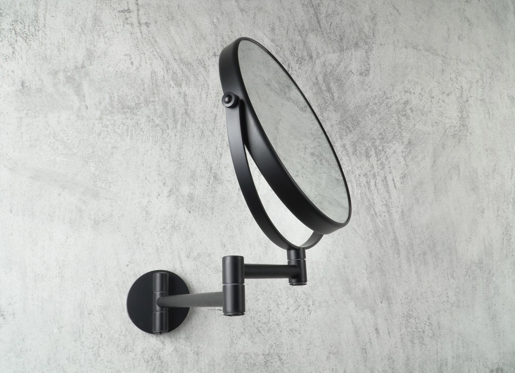 Kosmetické zrcátko pochází ze série ROUND a je určeno pro montáž na stěnu. Dlouhé, pohyblivé rameno umožňuje libovolné polohování zrcátka. Zrcátko se skrytým upevněním je oboustranné, přičemž jedna strana zvětšuje odraz až 3x.