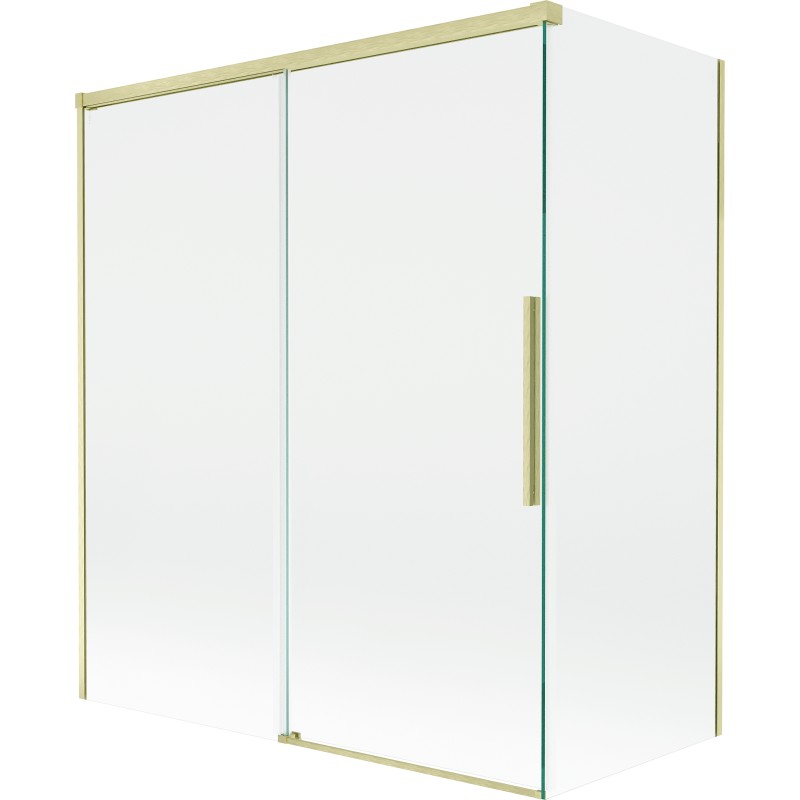 Technické údaje: Šířka: 140 cm Boční stěna: 70 cm Výška: 150 cm Typ: 2křídlé + boční stěna Montáž: Univerzální Typ: Posuvné/Posuvné Typ skla: Tvrzené Barva skla: Průhledná Tloušťka skla: 8 mm Povrchová úprava: Kartáčované zlato Profil: Hliník Povlak pro snadné čištění Možnost nastavení šířky Neviditelný mechanismus posuvu a nastavení dveří Vodítka s funkcí tlumeného zavírání Možnost sklopení dveří pro čištění síta Elastomerová těsnění pro odvod vody